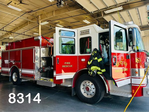 The 8314 is a 2021 Pierce Enforcer custom Pumper/ Tanker/ Rescue. It has a 1,000 gallon water tank and is capable of pumping 1500 gallons per minute. 60 gallons of AFFF (aqueous film-forming foam) and a full assortment of hydraulic rescue tools. 8314 is House 1's first out pumper for vehicle accidents and fires.