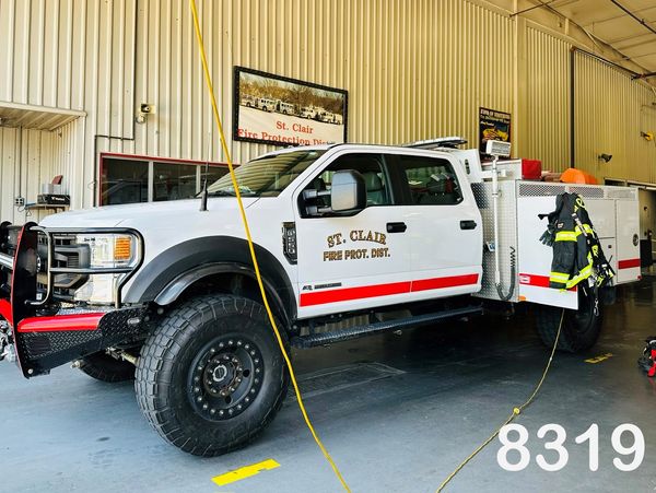 8319 is a 2020 Ford F550 Heavy Duty truck. It carries 250 gallons of water and has foam capabilities. 8319 is considered a "quick attack" vehicle used as the first out primary rescue vehicle for fires, car accidents and for assisting EMS on life threatening calls. It carries hydraulic tools, a full medical bag with oxygen and an AED as well.